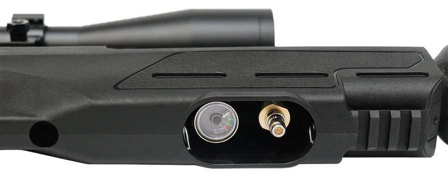 A new PCP from BSA. A Side-lever, Regulated performance PCP with all the usual refinements of BSA. With match grade adjustable trigger, cold hammer forged barrel, both producing unrivalled performance, large shot count from it’s Carbon Wrap air reservoir, ‘Blast Tamer’ valve system, all neatly wrapped in a Brand-New synthetic stock. Manufactured with a picatinny rail for ultimate flexibility of optics and accessory mounting, plus the option of an extended front picatinny rail for ultimate versatility.